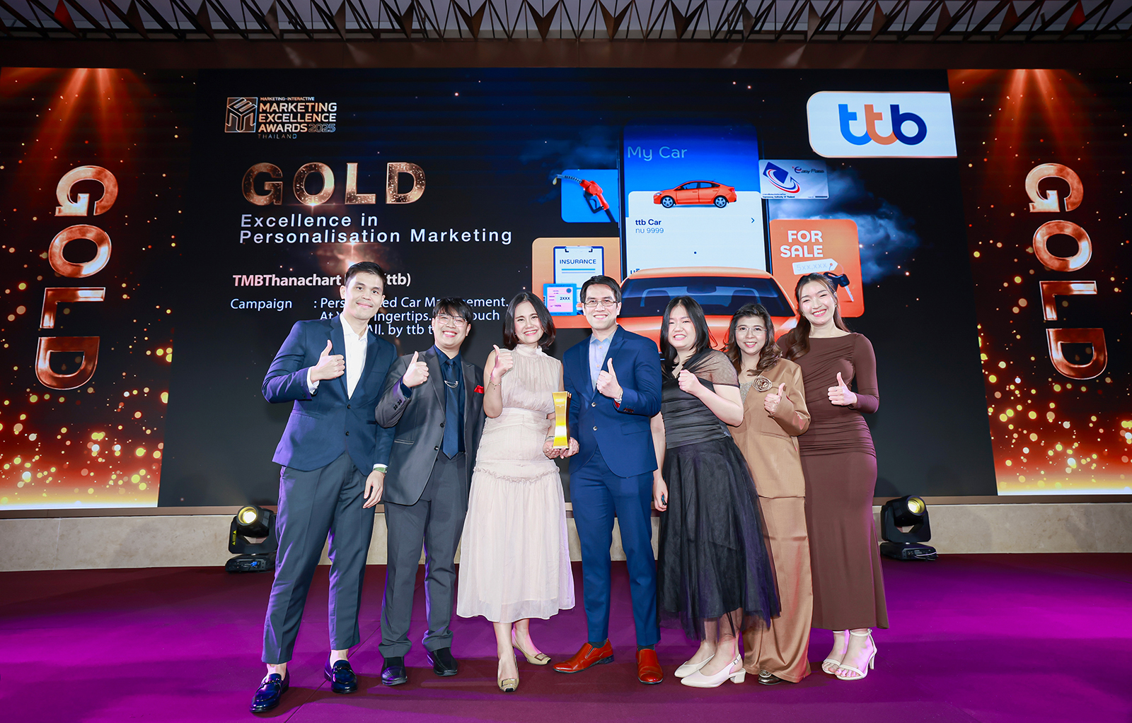 โดยในงาน Marketing Excellence Awards Thailand 2025 ทีทีบีได้รับรางวัลชนะเลิศ โดยมี นางณัฐวรรณ อภิรัตนพิมลชัย ประธานกลุ่ม กลยุทธ์ลูกค้าบุคคล ทีเอ็มบีธนชาต และนายปัณวรรธน์ อินนุรักษ์ รองประธานเจ้าหน้าที่บริหาร หัวหน้า Retail Customer Intelligence ทีเอ็มบีธนชาต ขึ้นรับรางวัลระดับ GOLD ในสาขา Excellence in Personalization Marketing ภายใต้ผลงาน “Personalized Car Management At Your Fingertips. One Touch Does it All” ผ่านแอปพลิเคชัน ttb touch ที่ได้พลิกโฉมการจัดการเรื่องรถยนต์สำหรับคนมีรถ (Car Owner) ให้ใช้งานง่าย ครบ จบในที่เดียว ด้วยการสร้าง Car Owner Ecosystem ที่รวบรวมข้อมูลและการจัดการทุกเรื่องรถไว้ในแอปเดียวแบบเฉพาะบุคคล เช่น การแจ้งเตือนที่ตรงใจและโปรโมชันที่เหมาะสมเฉพาะบุคคล การแนะนำประกันที่ตรงกับรถและงบประมาณ รวมถึงการจัดสินเชื่อรถแลกเงิน ส่งผลให้ฐานผู้ใช้งานฟีเจอร์ My Car ในแอป ttb touch เพิ่มขึ้นกว่า 100% และยังช่วยให้ลูกค้าชำระค่างวดตรงเวลามากขึ้น 29%
