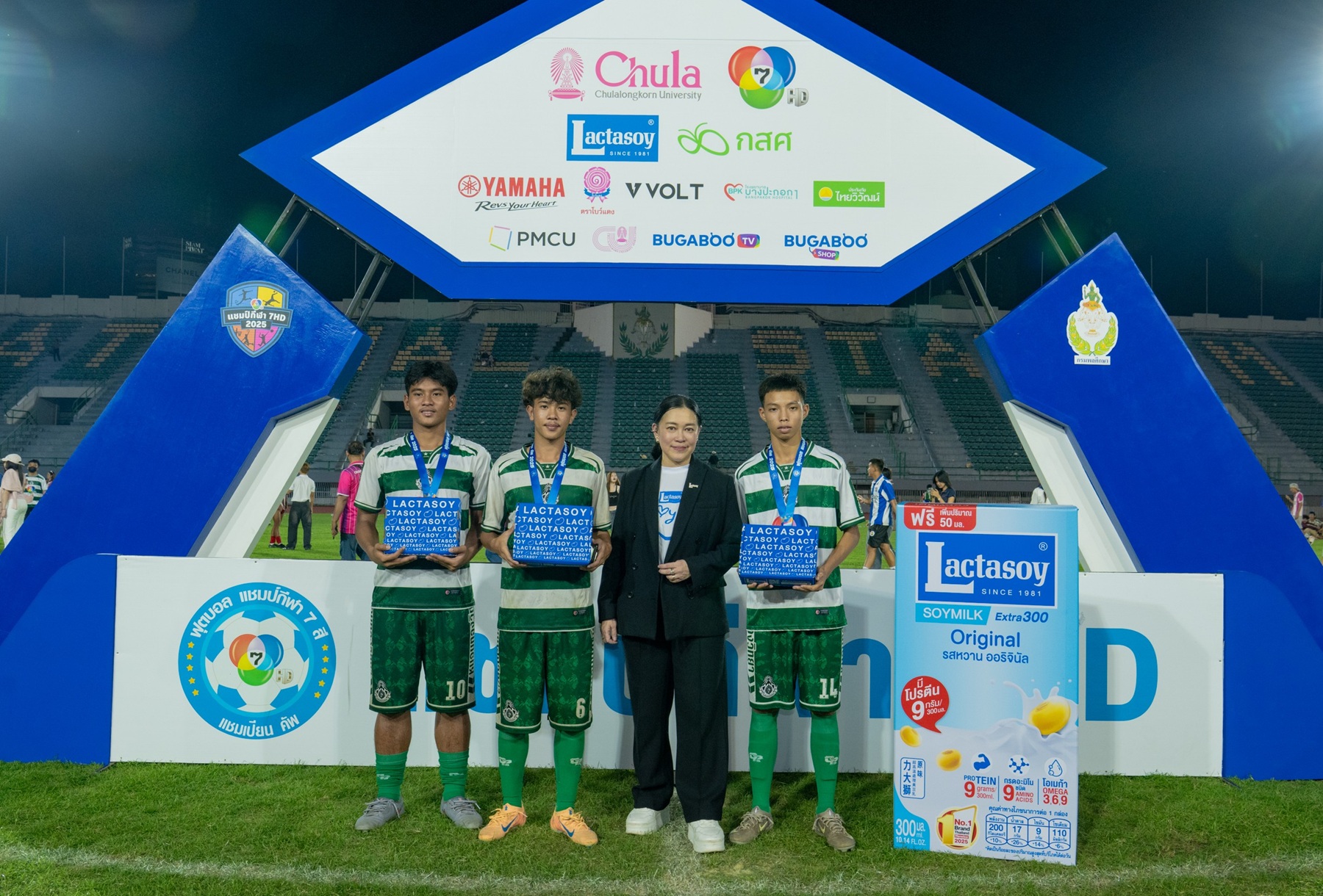 บริษัท แลคตาซอย จำกัด โดย นางสาวพรรณวนา มหาทรัพย์ ผู้จัดการฝ่ายโฆษณาและการตลาดสัมพันธ์ มอบรางวัลของทีมทุ่มเท ให้กับการแข่งขันกีฬาฟุตบอลเยาวชนชาย ในรายการแชมป์กีฬา 7HD 2025 พร้อมมอบผลิตภัณฑ์นมถั่วเหลืองแลคตาซอยให้นักกีฬาได้ดื่มฟรีตลอดทั้งปี ณ สนามศุภชลาศัย เมื่อวันก่อน โดยการแข่งขันคู่ชิงชนะเลิศในครั้งนี้ ถือเป็นคู่จับตามองของประชาชนชาวไทย ที่เข้ามาชมมาเชียร์กันแบบติดขอบสนามอย่างคับคั่ง ซึ่งผลการแข่งขัน โรงเรียน อบจ.ชัยนาท ชนะโรงเรียนหมอนทองวิทยา ไปเฉียดฉิวที่สกอร์ 2-1 เรียกว่าเป็นแมตซ์เยาวชนที่ยิ่งใหญ่แห่งปี
