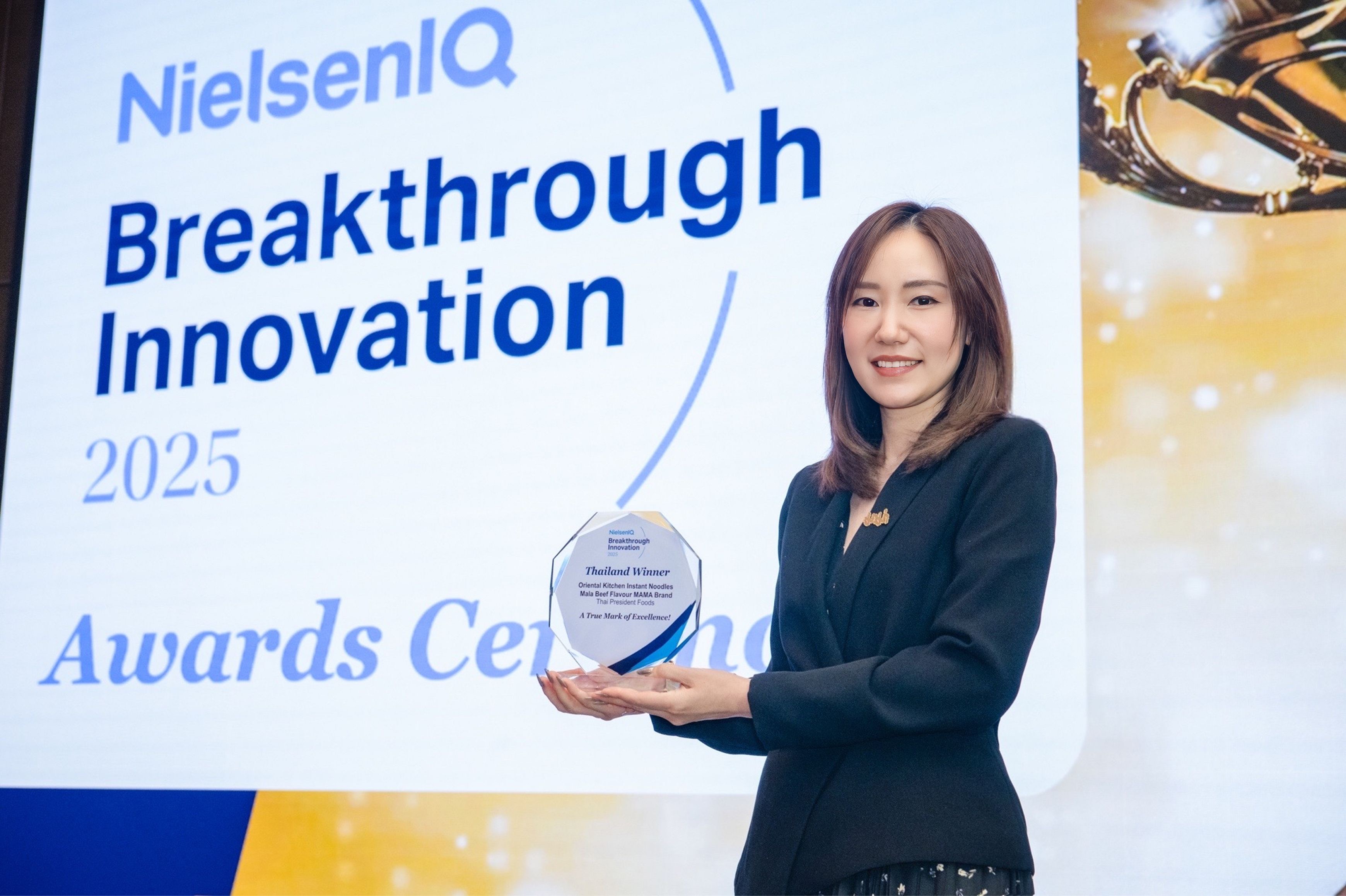 นางสาวกันตพร กำเนิดศิริกุล ผู้จัดการผลิตภัณฑ์แบรนด์มาม่า บริษัท สหพัฒนพิบูล จำกัด (มหาชน) ผู้จัดจำหน่ายผลิตภัณฑ์บะหมี่กึ่งสำเร็จรูป “มาม่า” (MAMA) เปิดเผยว่า รางวัล NIQ Breakthrough Innovation Awards 2025 เป็นรางวัลที่มอบให้กับแบรนด์ที่มีนวัตกรรมโดดเด่น สามารถตอบสนองความต้องการของผู้บริโภคได้จริง มีความแตกต่างจากคู่แข่ง และพิสูจน์ผลลัพธ์ทางธุรกิจจากข้อมูลวิจัยตลาดและผลการดำเนินงานจริง โดยการได้รับรางวัลในครั้งนี้ นับเป็นปีแรกของ “มาม่า” ที่สามารถคว้ารางวัลในเวทีด้านนวัตกรรมระดับสากลดังกล่าว