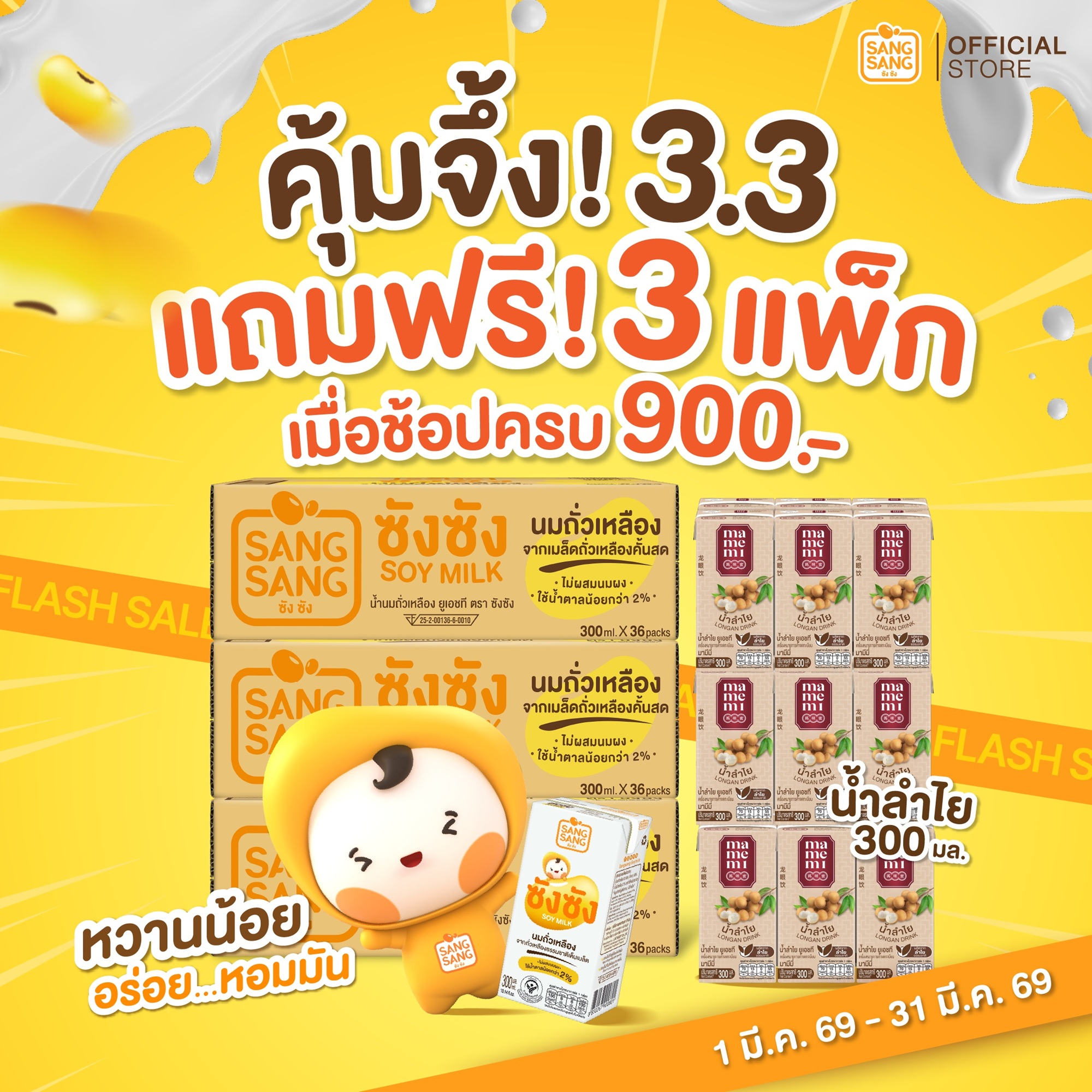 สายตุนห้ามพลาด! มีนาคมนี้ “ซังซัง” นมถั่วเหลืองหวานน้อย อร่อยหอมมัน จัดโปรโมชัน 3.3 คุ้มจึ้งแบบตะโกน เพียงช้อปซังซังครบ 900 บาท รับฟรีทันที “มามีมี่ น้ำลำไย” ขนาด 300 มิลลิลิตร จำนวน 3 แพ็ก ดื่มคู่กันได้ทั้งความอร่อยและความสดชื่นในคราวเดียว โปรโมชันตั้งแต่วันนี้ถึง 31 มีนาคม 2569 เท่านั้น! รีบพุ่งตัวไปช้อปได้เลยที่ www.lactasoyshop.com/product-category/sangsang