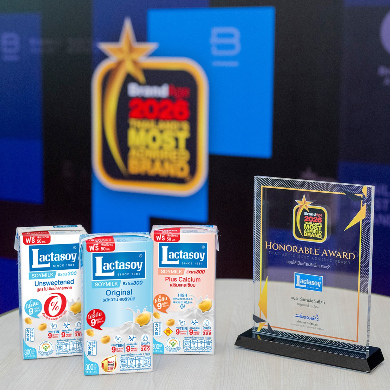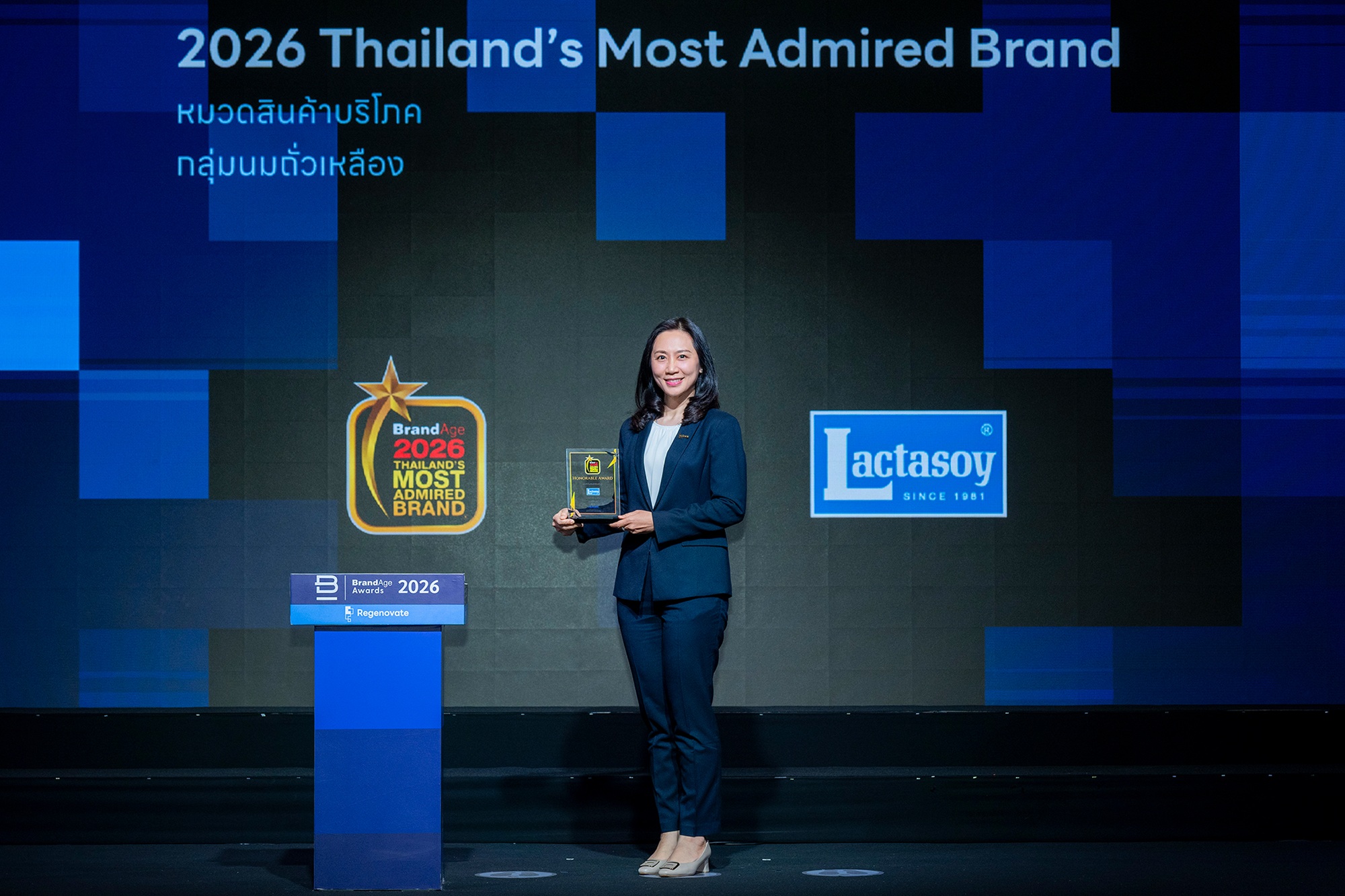 รางวัล 2026 Thailand’s Most Admired Brand ถือเป็นอีกหนึ่งความภาคภูมิใจที่ตอกย้ำความสำเร็จของแลคตาซอย ในฐานะแบรนด์นมถั่วเหลืองที่อยู่เคียงข้างผู้บริโภคชาวไทยมาอย่างยาวนาน ด้วยการพัฒนาผลิตภัณฑ์ที่มีคุณภาพ มีคุณค่าทางโภชนาการ รสชาติอร่อย และเข้าถึงผู้บริโภคทุกช่วงวัย พร้อมเดินหน้าสร้างสรรค์ผลิตภัณฑ์ที่ตอบโจทย์ไลฟ์สไตล์ของผู้บริโภคยุคใหม่อย่างต่อเนื่อง โดยการมอบรางวัลดังกล่าวจัดขึ้น ณ โรงแรมแกรนด์ เซนเตอร์ พอยต์ เพรสทีจ กรุงเทพฯ เมื่อวันก่อน