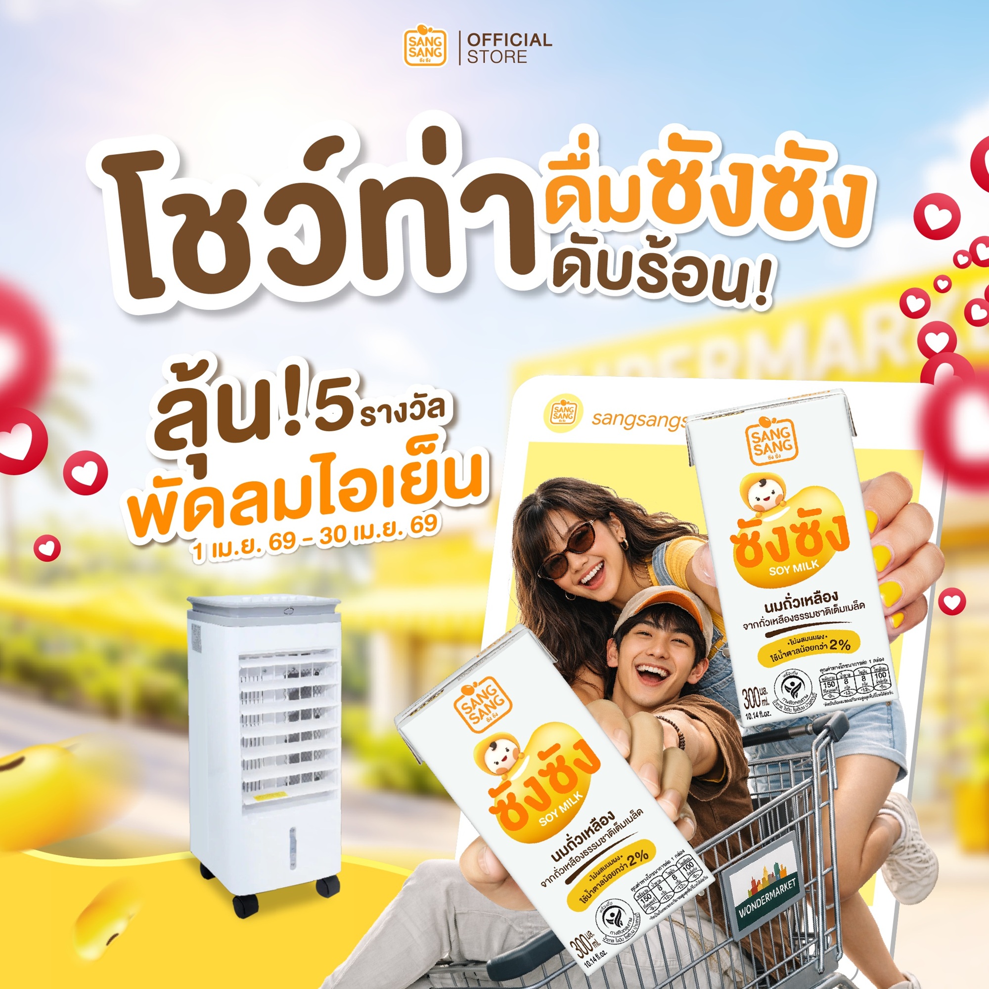 ความสนุกยังไม่จบ เพราะซังซังชวนทุกคนมาเล่นกิจกรรม “โชว์ท่าดื่มซังซังดับร้อน” เปิดพื้นที่ให้ทุกคนปล่อยไอเดียแบบไม่ต้องยั้ง แค่ดื่มให้ปังแล้วโพสต์ให้โดนก็มีสิทธิ์ลุ้นรับ “พัดลมไอเย็น” จำนวน 5 รางวัล ไว้เพิ่มความเย็นให้ชีวิตในฤดูร้อนนี้ กติกาง่าย ๆ แค่ซื้อซังซัง ขนาด 300 มิลลิลิตร ถ่ายภาพโมเมนต์ดื่มซังซังในสไตล์ของคุณ พร้อมรีวิวความอร่อย เเละชวนเพื่อนมาดื่มแบบจัดเต็ม ร่วมสนุกได้ตั้งแต่วันที่ 1-30 เมษายน 2569 ประกาศผลผู้โชคดีวันที่ 6 พฤษภาคม 2569 และยืนยันสิทธิ์ภายในวันที่ 10 พฤษภาคม 2569 โดยคัดเลือกจากผู้ที่ทำถูกต้องตามกติกา และมีสไตล์การรีวิวโดดเด่นโดนใจกรรมการที่สุด (1 บัญชีร่วมได้ 1 สิทธิ์) ดูรายละเอียดเพิ่มเติมได้ที่ https://bit.ly/3w0PQ5o